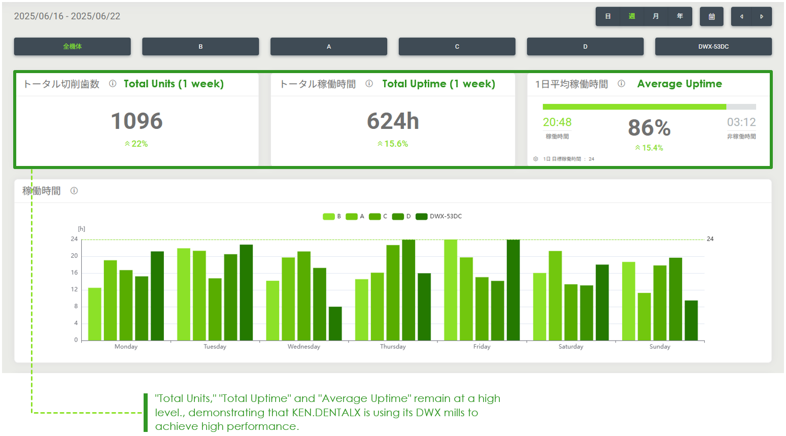 We believe we can use these data to not only optimize the milling process, but also optimize all lab workflows. For instance, when total units and uptime keep increasing, we can consider installing new machines to produce more units. However, we can also consider whether there is a workload backup at the CAD design stage. In this case, installing new milling machines would not be a practical solution. Thus, by examining the data from DGSHAPE Insights, we can evaluate various solutions to improve lab efficiency.